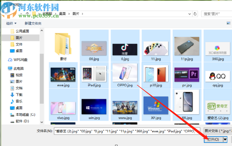 2.点击添加照片按钮,然后在打开的文件选择界面,我们选择所有要制作成相册的图片,然后点击右下角的打开。