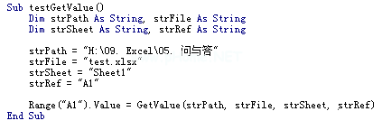 获取已关闭工作簿test.xlsx的Sheet1中单元格A1的值.