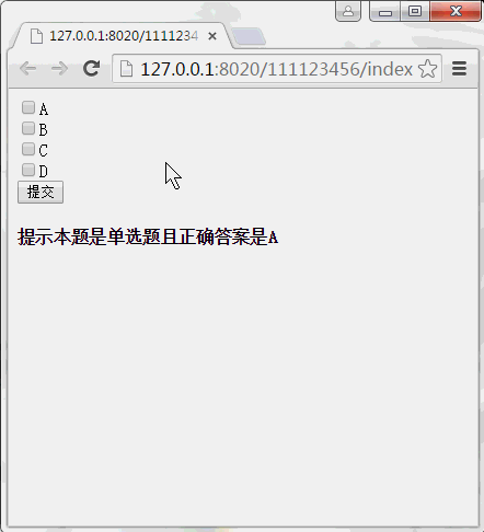 !DOCTYPE html html head meta charset=' utf-8 '/title/title/head body input Type=' checkbox ' id=' checkbox 01 '/A br/input Type=' checkbox 02 '/B br/input Type=' checkbox ' id=' checkbox 03 '/C br/input Type=' checkbox ' id=' checkbox 04 '/D br/Type=' button ' id=' button ' value=' submit '/H4表示此问题为单选题,且可以看出我假设这个问题是单选题,正确答案是a,于是我开始和JQ一起实施~ ~ ~。