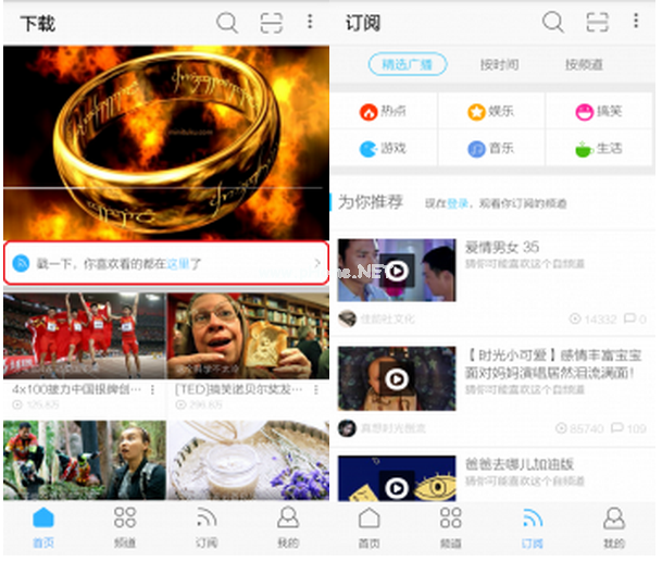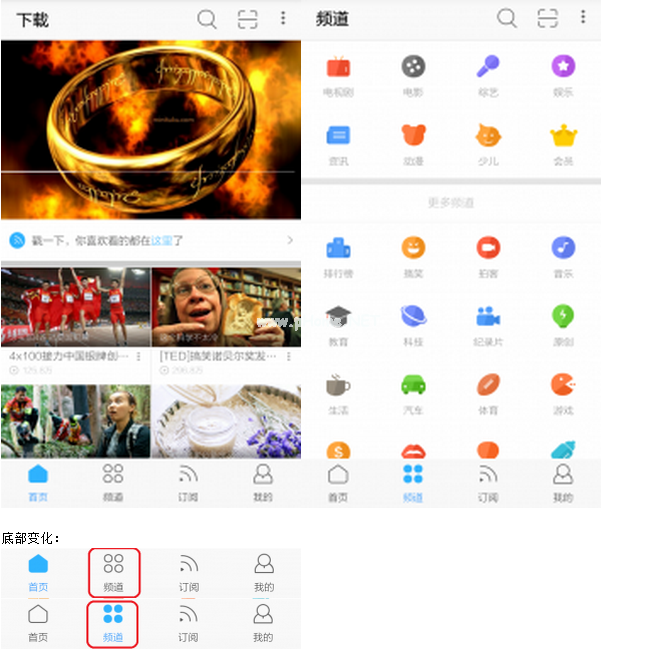 [mw_shl_code=javascript,true]page.on('back ',function(){ if(canBack){ global。exit();} else { nf.toast('再按一次退出优酷');canBack=truedelay 3。start();}});var延迟3=mm(' do _ Timer ');延迟3分钟。延迟=3000;delay 3 . interval=1000 delay 3 . on(' tick ',function(){ this。stop();canBack=false });[/mw_shl_code]仿优酷视频实现了四个主界面,页面之间可以通过左右滑动页面来切换页面,也可以通过点击底部按钮实现页面间的切换,并且底部按钮的颜色也会随着页面的切换而改变。此功能通过幻灯片视图组件实现,效果图片如下: