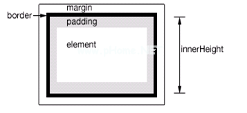 JQuery.fn.innerHeight([ value])(设置或返回当前匹配元素的内部高度。高度值包括填充,但不包括元素的外部边距、边框和其他部分的高度。下图: