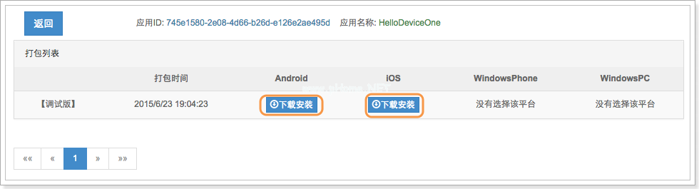 几分钟后,“打包……”将完成并变为“下载并安装”。点击后可以选择安装二维码或者下载文件到电脑上,然后通过工具安装到手机上。