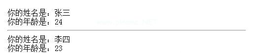 功能框(姓名、年龄){ return }您的姓名为:“姓名”br/“您的年龄为:“年龄;} document.write(box('张三',' 24 ');//函数调用document . write(' HR/');Var demo=box('李思',' 23 ');//也可以重新分配一个新的功能文档. write(演示);运行的结果是: