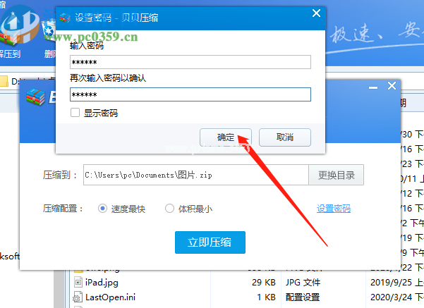 6.点击【确定】设置密码成功,然后我们返回到压缩任务界面,点击功能按钮【立即压缩】开始对文件夹进行加密压缩。