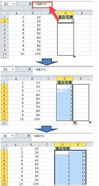 当然,也可以使用混合引用。例如,D$2表示行不变但列可以改变,d $2表示列不变但行可以改变。