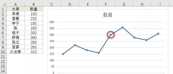 运行上述代码,Excel在当前工作表的第一张图表上显示系列1第5个数据点的类别名称,如下图2所示。