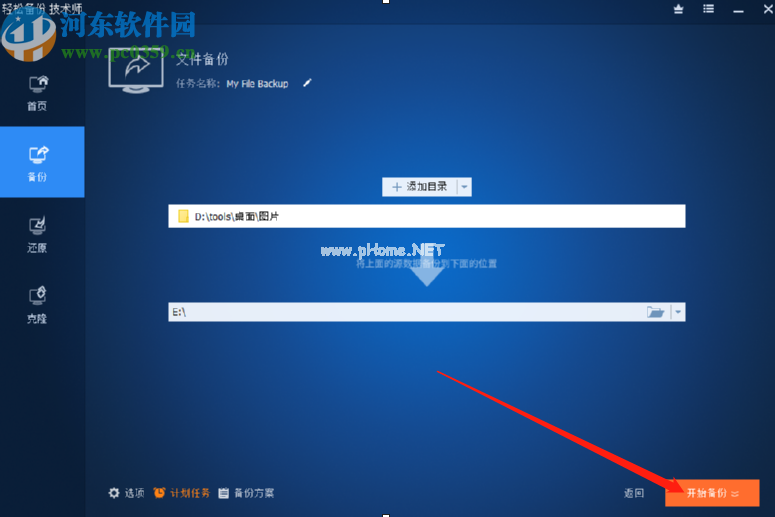 5.设置好备份文件夹的目标路径后,我们点击界面左下方的Schedule Task选项,就可以设置备份任务的执行时间了。