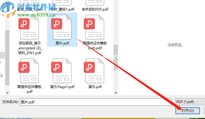 3.选择PDF文件后点击选择文件界面,选择目标文件后点击右下角的打开按钮。