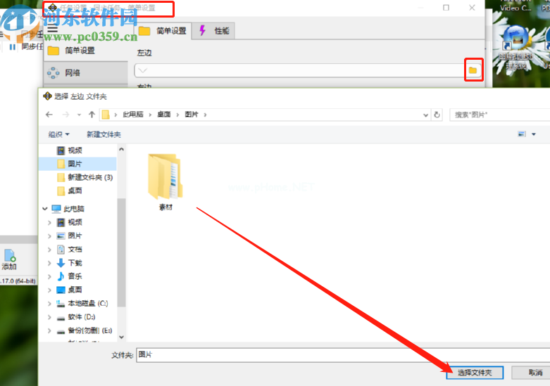 5.下一步是点击下面的文件夹图标。这一次,选择了另一个要同步的文件夹。用户可以根据自己的具体情况进行选择。