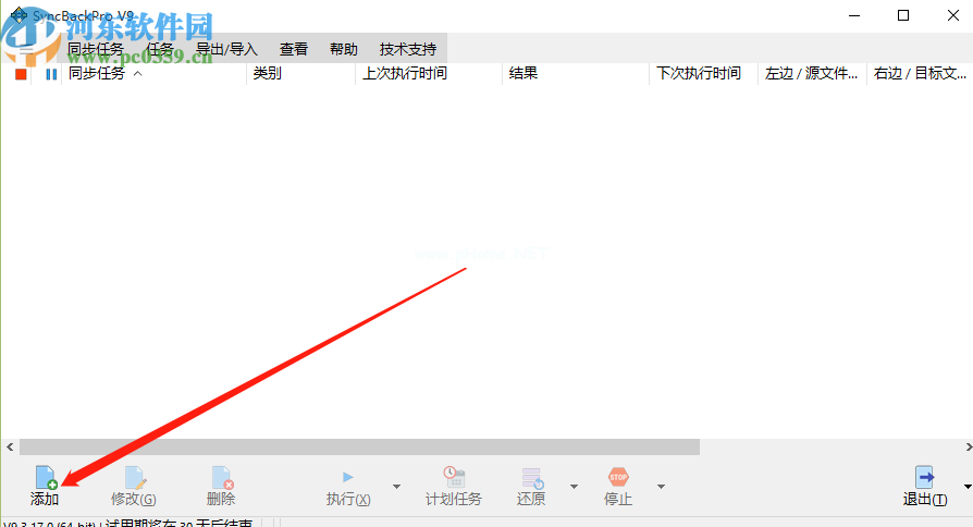 1.首先,第一步,打开软件后,点击界面左下角的添加此功能按钮,点击添加,创建同步任务。