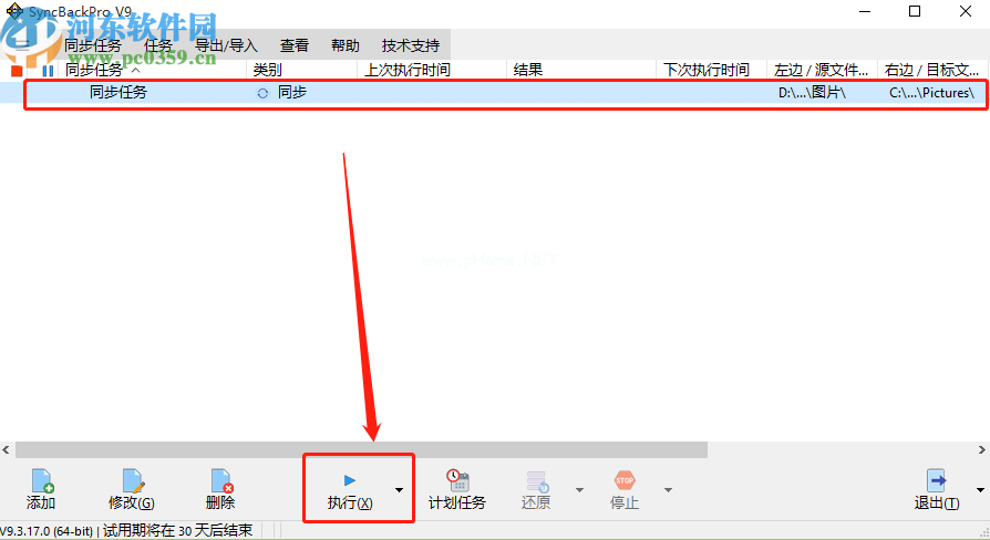 8.单击“确定”后,将创建同步任务。然后我们可以在主界面看到同步任务。最后,我们选择任务并单击执行。