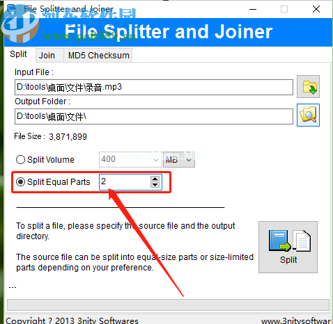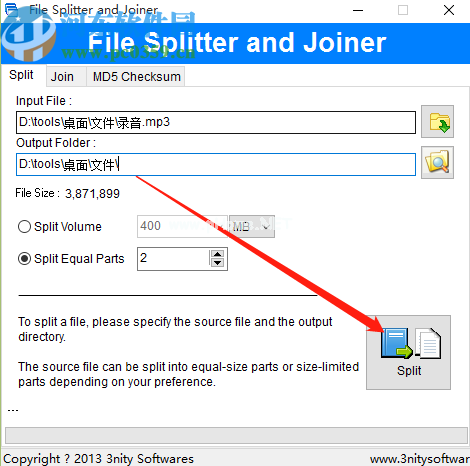5.选择好分割文件的方法后,我们可以点击界面右下角的Split功能按钮,开始分割文件的操作。