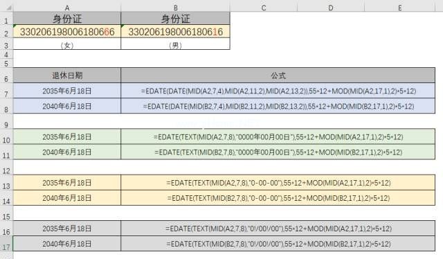 excel如何根据身份证计算退休时间?这也是学习组朋友提出的一个问题:如何根据身份证直接计算退休日期?