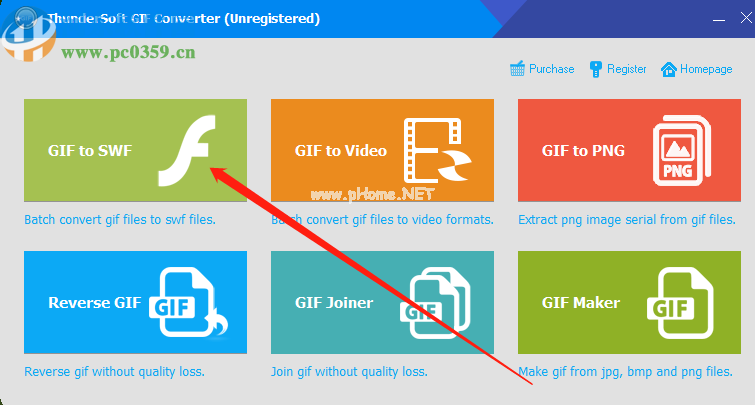 1.首先,在第一步中,我们打开软件后,可以在软件界面中看到GIF到SWF的功能,然后我们点击进入这个功能界面。