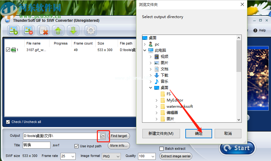 5.下一步,我们点击界面输出文件夹选项右侧的文件夹图标,然后在出现的界面中选择文件转换后的输出位置。