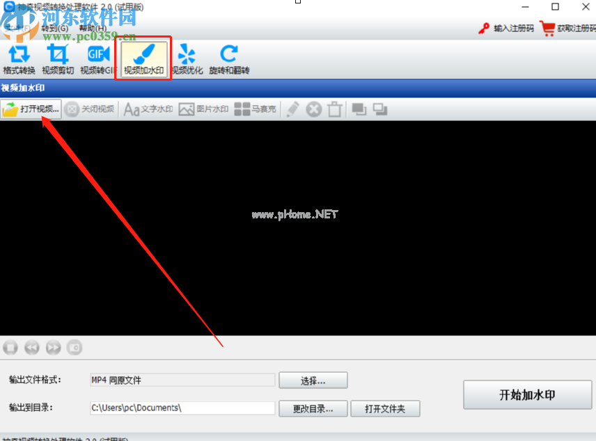 1.首先,在第一步中,我们打开软件,然后在软件界面中点击视频水印功能,然后在功能界面中点击打开视频的功能选项。