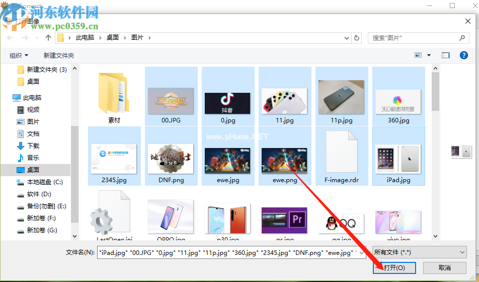 2.单击添加按钮后,下一步是在出现的界面中选择要处理的图像。您可以通过按下Ctrl键来选择多个图像。选择所有需要处理的图像后,单击右下角的打开按钮。
