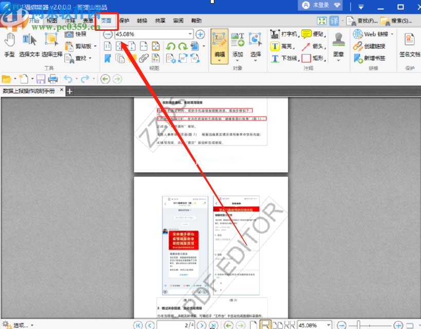 3.点击打开按钮后,我们可以在界面中看到PDF文件的内容,然后我们需要点击上一页的功能选项,如下图所示。