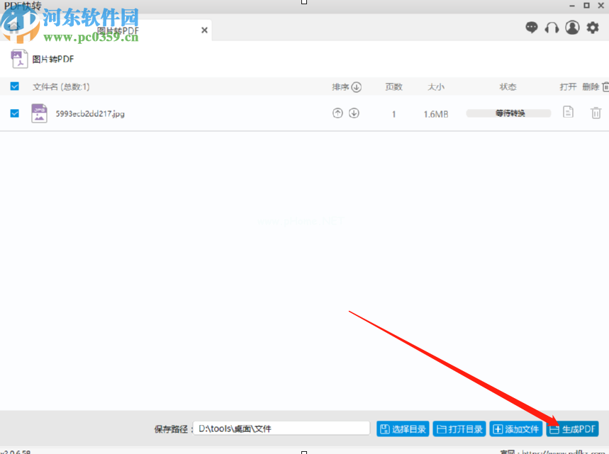 5.最后,完成以上操作后,我们可以点击界面右下角的生成PDF功能按钮,开始将图片转换为PDF文件的操作。