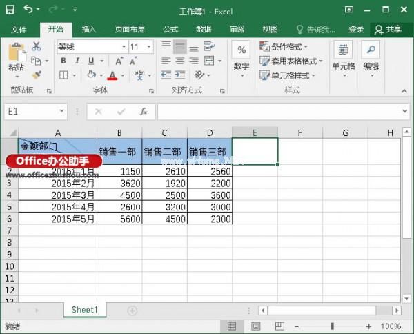 6.在单元格A1输入文本内容,先输入“金额部门”,再按“Alt Enter”强制换行,然后输入“月”。