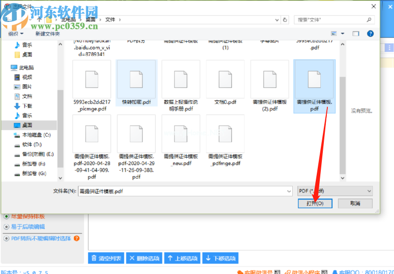 2.单击添加文件按钮,然后打开选择文件的界面。在这个界面中,我们可以选择目标PDF文件,然后点击下面的打开按钮。