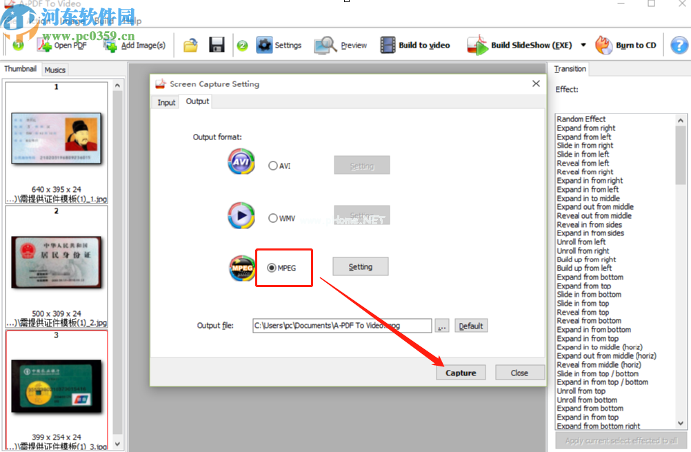 6.点击视频转换按钮后,会出现选择视频格式的界面。选择我们要转换的视频格式后,单击右下角的“捕获”按钮开始转换。