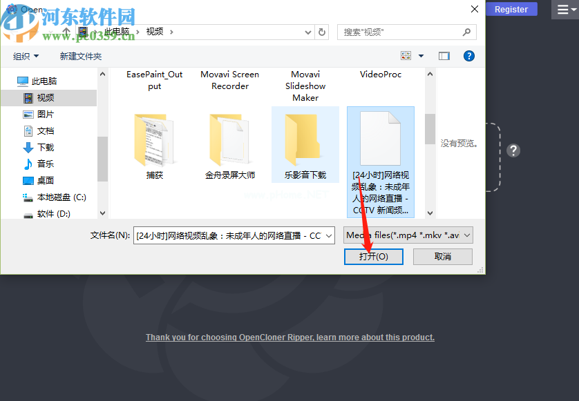 2.点击此添加视频模块后,将出现一个选择视频文件的界面。在这个界面中,我们选择要剪切的视频,然后点击“打开”按钮。
