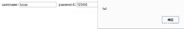 $(“表单”).submit(function(e){ e . prevent default();//var url=$(this).attr('action '),username=$(' input[name=' username ']').val(),密码=$('输入[name=' password ']').val(),请求数据={ ' username ' : username,' password ' : password };$.获取(网址、请求数据),函数(结果){ alert(结果);});});输入错误用户名卢卡斯后,结果为: