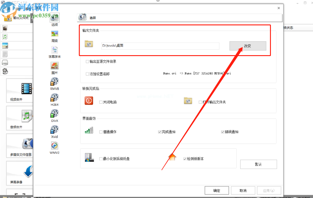 2.进入软件的选项设置界面后,我们可以看到输出文件夹的模块,然后我们需要点击更改按钮。