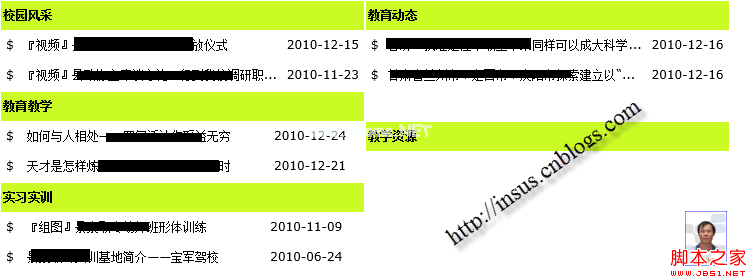 为了实现这一演示,Insus.NET使用了一般新闻示例、其类别(目录)和文章。在一个页面上,显示所有类别,每个目录下显示最新新闻。效果如下: