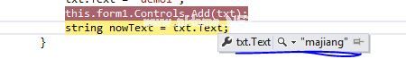 运行this . form 1 . controls . add(txt);之前txt的值是demo1,如图