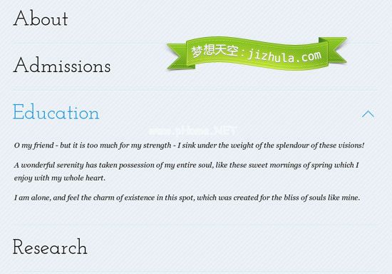 制作教程在线演示制作一个清新内容的手风琴是一个基于jQuery的非常时尚的手风琴效果,可以应用在实际项目中,也是学习的好例子。