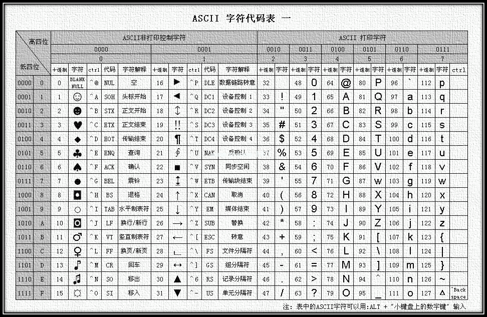 图1 ASCII编码表