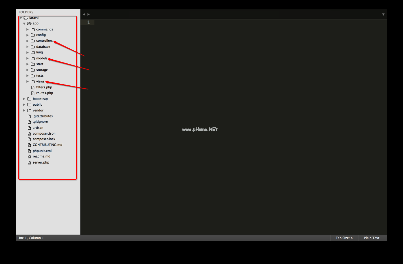 Laravel是应用程序目录的名称。你可以取一个你喜欢的名字。执行完上面的命令,再等一会儿(毕竟网速在国内是个大坑),安装后就会得到这一堆目录:
