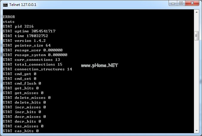 复制代码如下:telnet 127.0.0.1 11211。