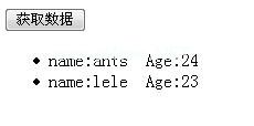 1.1.jqury如何以ajax的形式调用后台ASP.NET页面生成的json数据;2.jquery的简单dom操作;3.把这个jquery开发手册发给大家(让我们慢慢研究)。准备:第一,我们会建一个新的网站(. net2.0就行);1.我们项目中jquery的js文件。2.创建一个新的htm文件,并将其命名为dome.htm。代码如下:(头部区域的js代码是完整的实现代码,有详细的注释)复制代码的代码如下:DOCTYPE html PUBLIC '-//W3C//DTD XHTML 1.0 Transitional//EN ' ' http://www . w3 . org/TR/XHTML 1/DTD/XHTML L1-Transitional . DTD ' html xmlns=' http://www . w3 . org/1999/XHTML ' head title jquery get JSON数据呈现页面/title脚本类型=' text/JavaScript ' src=' http 3360 js/jquery-1 . 2 . 1。html(“”)。//清除列表中的数据//发送ajax请求$。getJSON('jsondata.ashx ',//生成JSON数据的服务器页面{name3360' test ',age:20},//发送到服务器的查询字符串(此参数为可选)//处理返回的JSON数据。在本例中,函数(json)以列表的形式呈现{//JSON中的数据被循环获取,并以$的形式呈现在列表中。每个(json,function(i){ $('#list '))。追加(' liname:' json[i])。姓名' Age:' json[i]。age '/Li ')})})})/script/Head输入id=' button 1 ' type=' button ' value=' get data ' onclick=' getdata()'/ul id=' list '/ul/body/Html 3。我们将构建另一个通用应用程序(jsonData.ashx)代码如下:复制代码如下:% @ webhandler语言=' c #' class=' jsondata'%使用系统;使用系统。Web公共类JSON data : IHttpHandler { public void process request(HttpContext context){ context。响应。内容类型='文本/纯文本';字符串数据='[{ name : ' ants \ ',age:24},{ name: \ ' lele \ ',age :23 }]';//构造的json数据//下面两句话用来测试前台发送到此页面的查询字符串query strname=context . request . querystring . getvalues(' name ')[0];//取查询字符串query stage=context . request . query string . getvalues(' age ')[0]中namer的值;//获取值上下文。响应。在查询字符串中写入年龄(数据);} public bool IsReuse { get { return false;}}}以上我只说一件事,那就是$。getJSON方法$。前台页面中的getJSON(url,params,callback)请求一个带有HTTP GET: XMLHttpRequest参数:url (String):的JavaScript JSON数据返回值来加载页面的url地址。发送到服务器的参数(映射):(可选)键/值对参数。回调(函数):(可选)加载数据时要执行的函数。这里有一些成功操作: 1的图片。操作结果