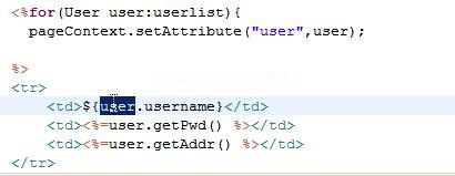 %=user . GetAdr()%相当于${user.addr}。3.例如:%=请求。getattribute ("userlist")%相当于$ {requestScope.userlist }4。例如,原理与上述示例3相同。$ { session scope . user list } 1 $ { session scope . user list } 2 $ { application scope . user list } 3 $ { page scope . user list } 4 $ { uselist }含义:执行顺序为4 1 2 3。随之而来的是。只是一个字符串,它不是真正的内置对象。您不能调用该对象。4.例如,%=user . GetAdr()%相当于${user.addr}第一句之前的用户,这是一个变量。第二句后面的用户必须是某个范围内的属性。