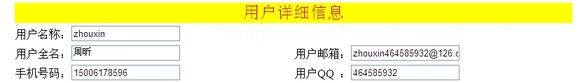 请重新输入');} else { var data=r;var Array=new Array();array=data.split(',');//为文本框赋值$(' #全名')。val(数组[0]);$('#Email ').val(数组[1]);$(' #手机').val(数组[2]);$('#qq ').val(数组[3]);} }/脚本/标题正文表单id=' form 1 ' runat=' server ' div align=' center ' table style=' text-align : center;宽度:800 px ' tr style='底色:黄色;宽度:800 px ' TD colspan=' 2 ' style=' text-align : center ' font size=' 5 ' color=' red '用户详细信息/font/TD/tr trtd col span=' 2 ' style=' text-align : left '用户名称:AsP : TextBox ID=' Txtusename ' runat=' server '/AsP : TextBox/TD/tr trtd style=' text-align : left;宽度:400像素用户全名:AsP : TextBox ID='全名' runat=' server ' ReadOnly=' true '/AsP : TextBox/tdtd style=' text-align 3360 left;宽度:400像素用户邮箱:AsP : TextBox ID=' Email ' ReadOnly=' true ' runat=' server '/AsP : TextBox/TD/tr trtd style=' text-align 3360 left;宽度:400像素手机号码:AsP : TextBox runat=' server ' ID=' mobile phone ' ReadOnly=' true '/AsP : TextBox/tdtd style=' text-align 3360 left;宽度:400像素用户QQ:AsP : TextBox runat=' server ' ID=' QQ ' ReadOnly=' true '/AsP : TextBox/TD/tr/table/div/form/body/html后台代码:复制代码代码如下:使用系统;使用系统。数据;使用系统。配置;使用系统。收藏品;使用系统网络.使用系统。网络安全;使用系统网络。用户界面使用系统。网络控件;使用系统。网页组件;使用系统网络。UI。HtmlControls使用系统数据。程序公共部分类默认值3 :系统网络。ui。page { string StrAction=受保护的无效页面_加载(对象发送方,事件参数e){ StrAction=Request[' action '];//为服务器控件添加失去焦点的事件让服务器控件不刷新的关键Txtusename .属性。添加(“on bulr”、“WriteDataText()”);Txtusename .焦点();if (StrAction=='action') { //获取用户输入的名称字符串用户名=请求['用户名'];if(!Isusername(用户名)){响应clear();回应内容类型=“应用程序/文本”;回应。写('否');回应end();} else { InitData(用户名);} } } ///摘要///创建人:周昕///创建时间:2009-06-11 ///方法名称:InitData ///作用:查找用户的详细信息////summary///param name=' username '/param public void InitData(字符串用户名){ SqlConnection mycon=new SqlConnection();迈肯。连接字符串=配置管理器连接字符串['BoBoConn'].ToString();字符串sql='从登录用户中选择全名、电子邮件、手机、QQ、其中用户名=' '用户名' ';迈肯open();SqlCommand mycom=new SqlCommand(SQL,mycon);SqlDataReader myda=mycom .ExecuteReader();而(梅达.read()){字符串全名=myda['全名'].ToString();字符串Email=myda['Email'].ToString();string手机=myda['手机'].ToString();字符串QQ=myda['QQ'].ToString();字符串数组=全名、‘邮箱’、‘手机’、‘QQ;回应clear();回应内容类型=“应用程序/文本”;回应写(数组);回应end();} } ///摘要///创建人:周昕///创建时间:2009-06-11 ///方法名称:Isusername ///作用:返回弯曲件值判断用户是否存在////summary////param name=' username '/param////returns/returns public bool Isusername(字符串用户名){ SqlConnection mycon=new SqlConnection();迈肯。连接字符串=配置管理器连接字符串['BoBoConn'].ToString();字符串sql='从操作员管理中选择计数(*),其中用户名=' '用户名迈肯open();SqlCommand mycom=new SqlCommand(SQL,mycon);int n=(int)mycom .执行标量();迈肯close();if(n 0){ 0返回true} else {返回false} } }效果:运行前只有用户名文本框可用