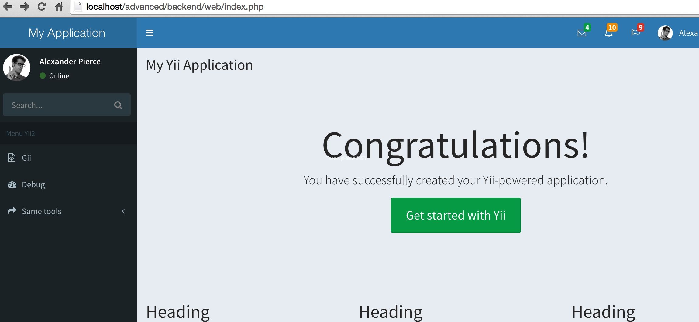 在后台,我们使用admin LTE(yii 2框架的后端主题)。