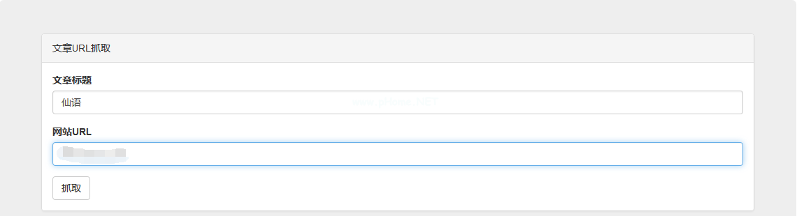 Div class=' jumbo tron ' id=' main jumbo tron ' Div class=' panel panel-default ' Div class=' panel-heading '文章URL爬网/Div class=' panel-body ' Div class=' form-group '标签为=' article _ title '文章标题/标签类型=' text ' class=' form-control ' id=' article _ title '占位符=' article title '/Div class=' form-group '标签为=' web _ URL '网站URL/标签类型=' text' class=' form-control' id='网站_ URL '占位符='网站URL'/div按钮类型=' submit ' class=' btnbtn-default ' grab/button/Div/Div class=' panel-panel-heading '文章URL/Div class=' panel-body ' H3/H3/Div/Div/Div直接加载代码,然后添加一些自己的样式调整,界面就完成了:
