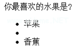 "%@"页面内容类型=' text/html;charset=UTF-8 '页面编码=' UTF-8 ' % html头元http-equiv=' Content-Type ' Content=' text/html;charset=UTF-8 '标题在此插入标题/title脚本src=' http : jquery/jquery-1。10 .2 .js /脚本脚本类型='text/javascript' $(文档)。ready(function(){ $(' ul Li : eq(1)')).移除();});/脚本/头体p title='你最喜欢哪种水果?'你最喜欢的水果是?/p ul li title='apple '苹果/li li title='orange '橘子/li li title='香蕉'香蕉/Li/ul/body/html