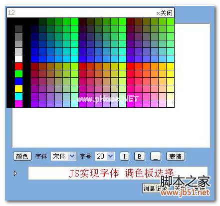 版权声明:JS实现字体选色板实例代码是由宝哥软件园云端程序自动收集整理而来。如果本文侵犯了你的权益,请联系本站底部QQ或者邮箱删除。
