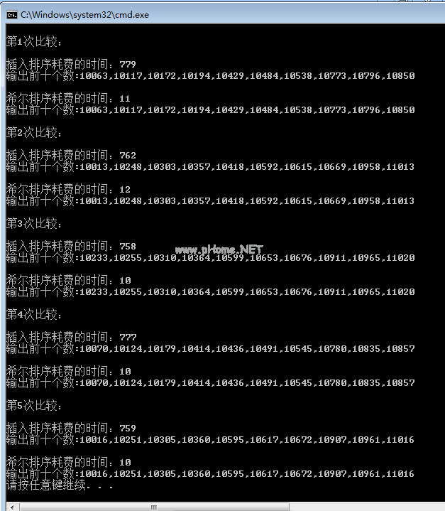 首先要明确增量法:第一个增量法是:d=count/2;第二个增量的值是:d=(count/2)/2;直到:d=1;上图观察到的现象是:d=3: 40与50比较时,因为50大,所以不交换。20和30比较,因为30大,不要交换。对比80和60,因为60小,交换。d=2时:40和60比较,不交换,60和30交换。此时兑换后的30比之前的40小,需要用30兑换40,如上图。20和50不交换比较,50和80不交换继续比较。当d=1时:这是前面提到的插入排序,但此时序列几乎是有序的,所以给插入排序带来了很大的性能提升。由于“希尔排序”是“插入排序”的改进版本,让我们比较一下它在1w个数字中的速度。测试如下:按照以下步骤复制代码:使用系统;使用系统。集合。通用;使用系统。Linq使用系统。文字;使用系统。穿线;使用系统。诊断;命名空间shell sort { public class program { static void main(string[]args){//5 comparison for(int I=1;I=5;I){ Listint list=new Listint();//将1w随机数插入(int j=0;10000j;j ) {螺纹。睡眠(1);名单。添加(新的随机((整数)日期时间。现在。滴答)。Next(10000,1000000));} Listint list 2=new Listint();清单2。AddRange(列表);控制台。write line(' \ n第“I”个比较:');秒表手表=新秒表();看着。start();插入排序(列表);看着。stop();控制台。write line(' \ n插入排序所用的时间:' watch。elapsedmirisseconds);控制台。WriteLine('输出前十位数字:' string.join(',',list.take (10))。tolist()));看着。restart();ShellSort(列表2);看着。stop();控制台。WriteLine('\n花在希尔排序上的时间:' watch。elapsedmirisseconds);控制台。WriteLine('输出前十位数字:' string.join(',',list2.take (10)。tolist()));} }///summary///hill sort////summary///param name=' list '/param static void shell sort(list int list){//取增量int step=list。计数/2;While (step=1) {//不需要(int i=step)的序列;我列举。计数;I){ var temp=list[I];int j;//有序序列为(j=I-step;j=0临时列表[j];j=j-step){ list[j step]=list[j];} list[j step]=temp;}步骤=步骤/2;} }///summary////insert sort/////summary///param name=' list '/param static void insert short(list int list){//不带(int I=1;我列举。计数;I){ var temp=list[I];int j;//有序序列为(j=I-1;j=0临时列表[j];j-){ list[j 1]=list[j];} list[j 1]=temp;}}}}截图如下: