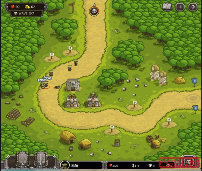 鼠标左键鼠标点击操作,1和2选择特殊技能火雨(rain of fire)和援兵(reinforcements)。3为闪电技能(lightening,白金功能)。4为太阳射线塔(sunray sorcerer,仅限第9关雷云神殿)点击START,点击"开始",点击地图上的关卡,点击TO BATTLE开始战斗。建造建筑,消灭所有来犯的敌人。(1) 防御塔只能造在插了旗帜的空地上。(2) 每波提前波次,可以获得额外的金钱和刷新时间奖励。