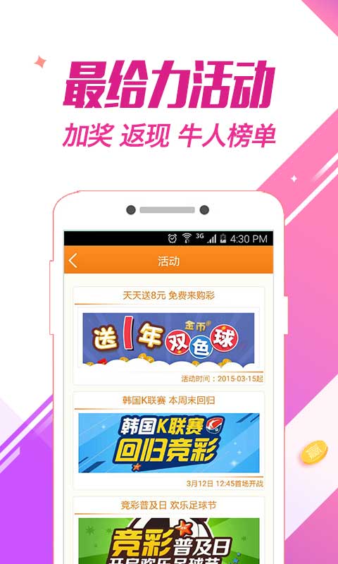 该平台可支持双色球、大抽奖、11选5、福彩3D、SMG足球、SMG篮球、SMG单传等多种颜色投注选择;丰富多彩的活动会给你带来更多的好处;