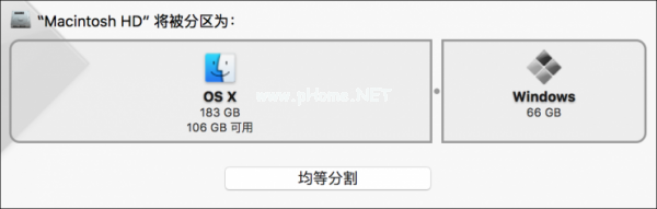 令人纠结的是,BootCamp Assistant会让你为Windws10选择合适的分区大小。默认为等分,适合需要在两个系统之间来回切换的人。
