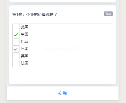 view class=' body ' view class=' body-content '第一题:企业的价值观是?/view view class='label '多选/view /view view class='options '复选框-group bind change=' CheckBoxChange ' label class=' checkbox ' wx : for=' { { items } } ' view checkbox value=' { { items } '。“name } }”已选中=“{ { item。已选中} } '/{ { item。value } }/view/label/checkbox-group/view wxss: