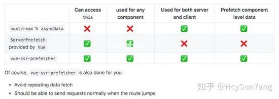 在Vue的服务器端渲染中,预取数据有两种方式,一种是nuxt/ream表示的asyncData,另一种是Vue原生提供的serverPrefetch组件选项。然而,这两种方案都有一些缺点: