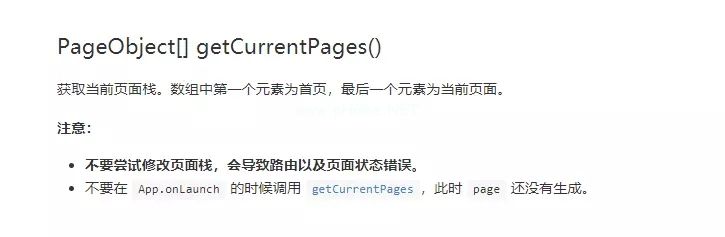 主要是用小程序提供的getCurrentPages方法,具体内容可以在文档中查看,我就直接映射到这里,因为文档很简单