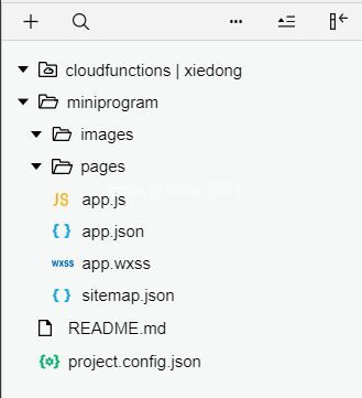 新构建后,微信为我们提供了一个参考模板程序,我们自己创建所有需要的文件和代码,所以删除所有不需要的文件,删除cloudfunctions下的所有文件,miniprogram/images和miniprogram/pages文件,删除app.json中的样式文件和原始页面配置。